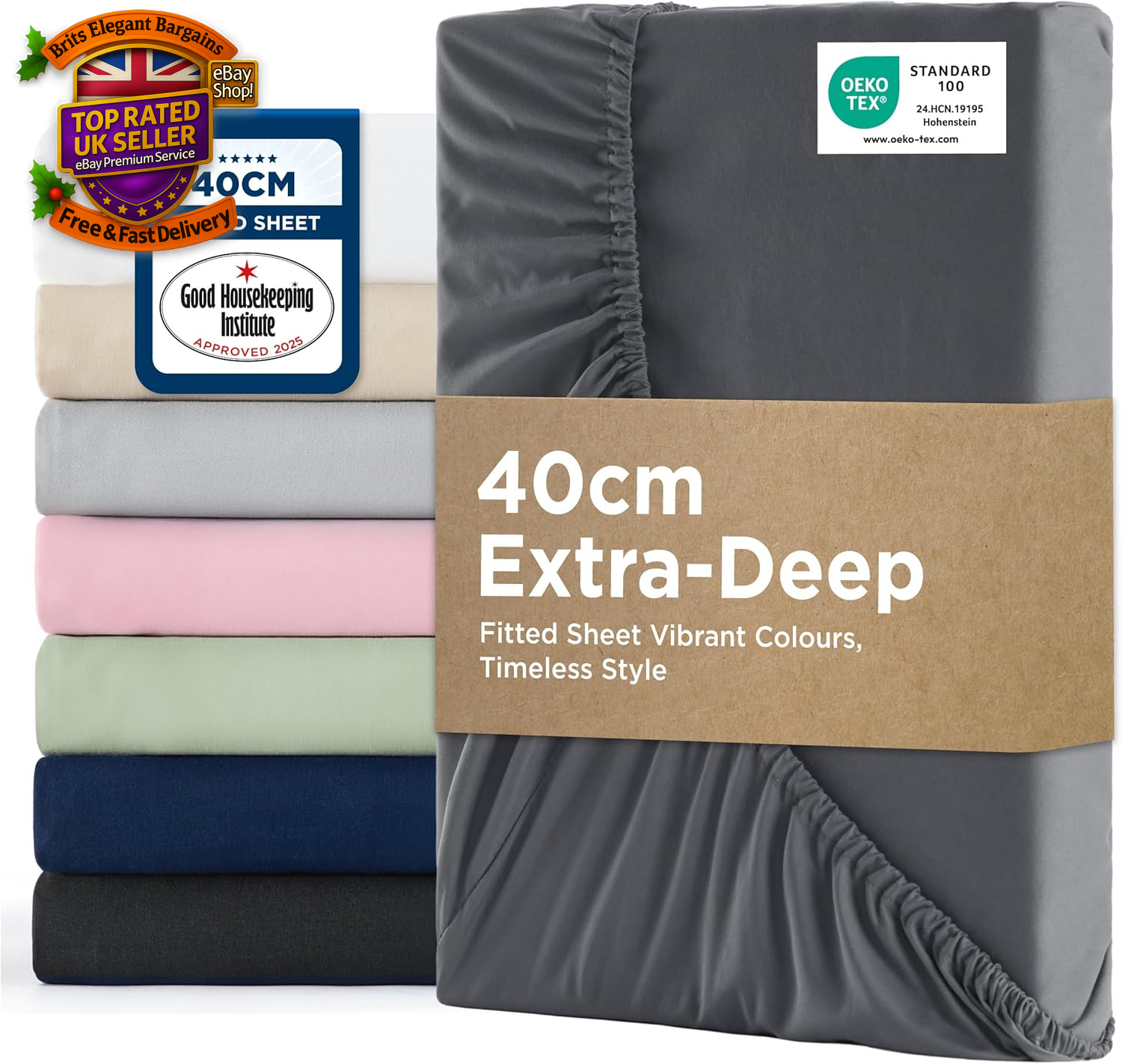 King Size Fitted Sheet Deep - Dark Grey Kingsize Bed Sheet Extra Deep Pocket 16