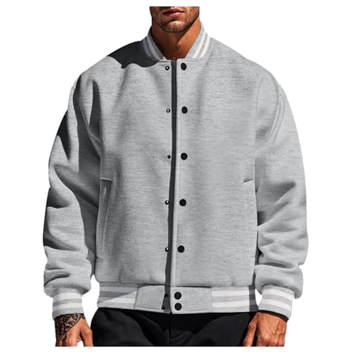 Bomber Jacket Men - Men'S Long Sleeve Sweatshirt Cardigan Casual Holiday Baseball Coat (Light Gray L)