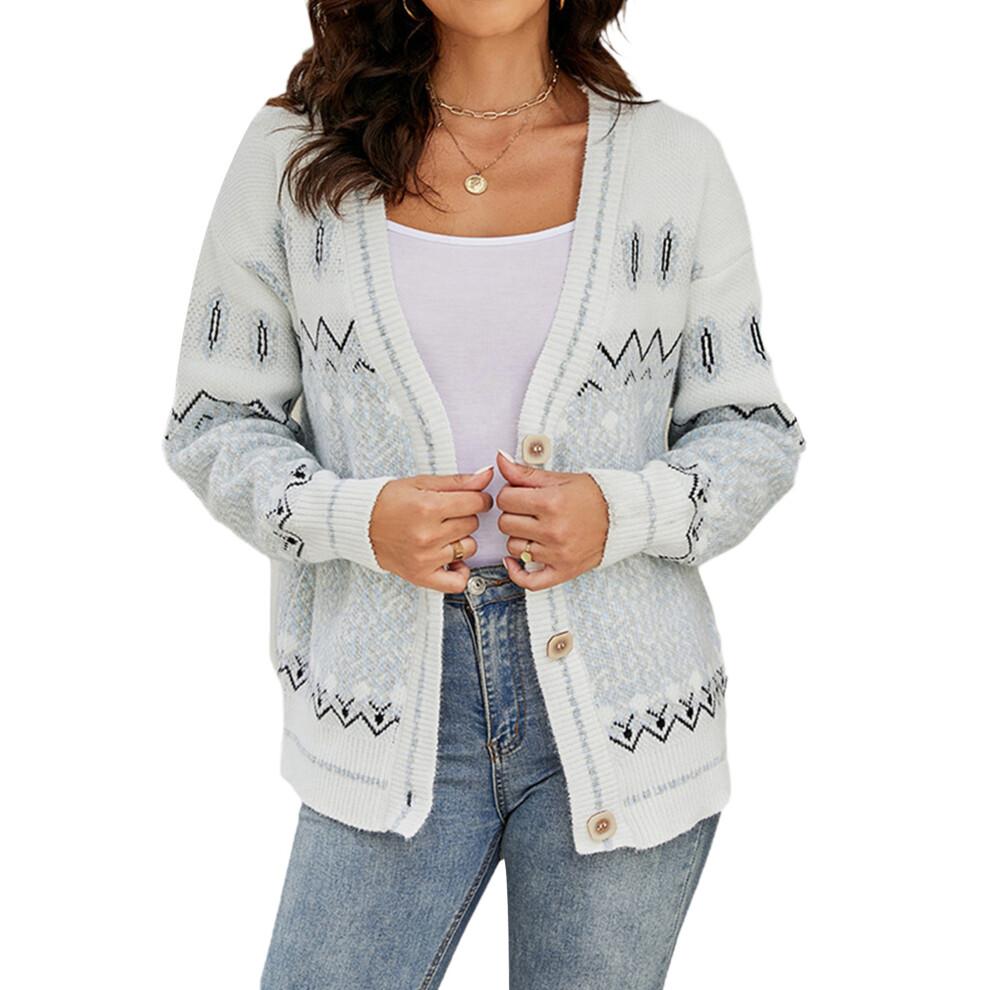 RWGSNB Mens V Neck Cardigan Sweater Vintage Rhombus Jacquard Knit Jumper Button Cardigan Coats Casual Long Sleeve Transition Jacket Business Knitwear Cardigan For Men,Gray,Xs