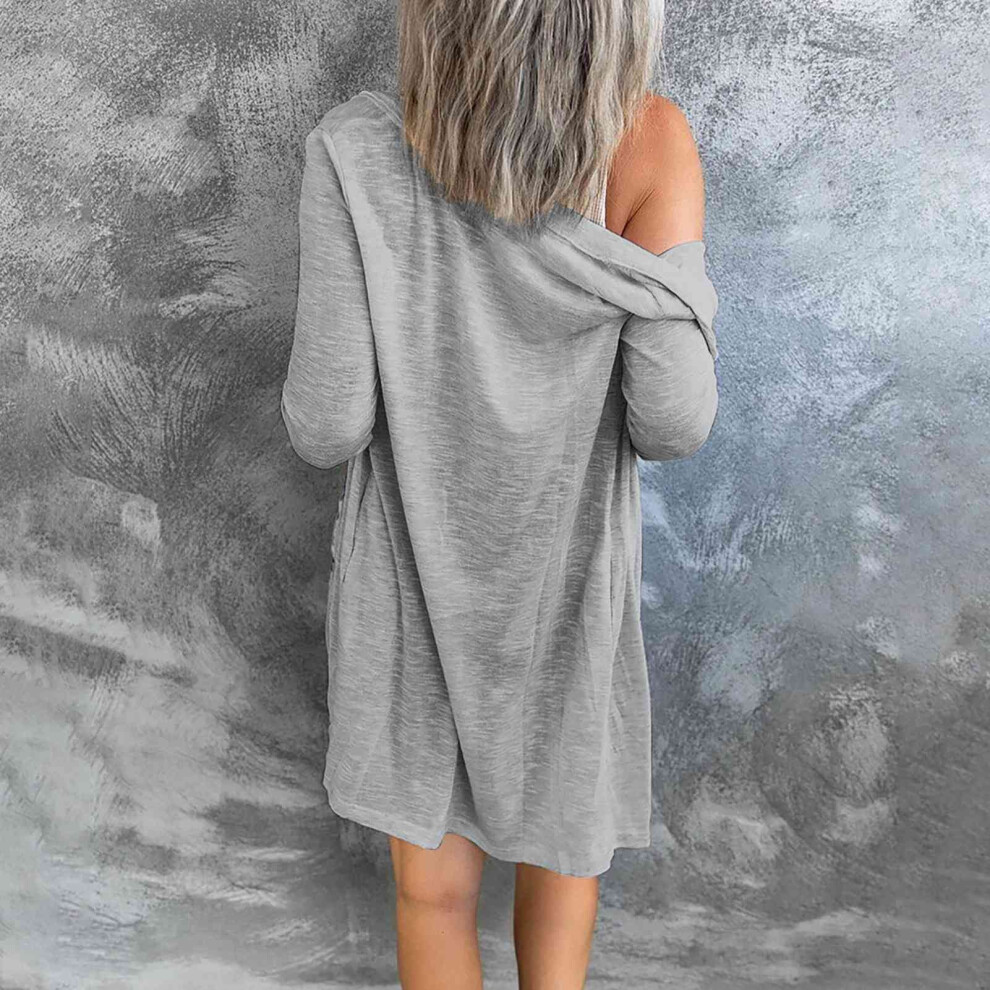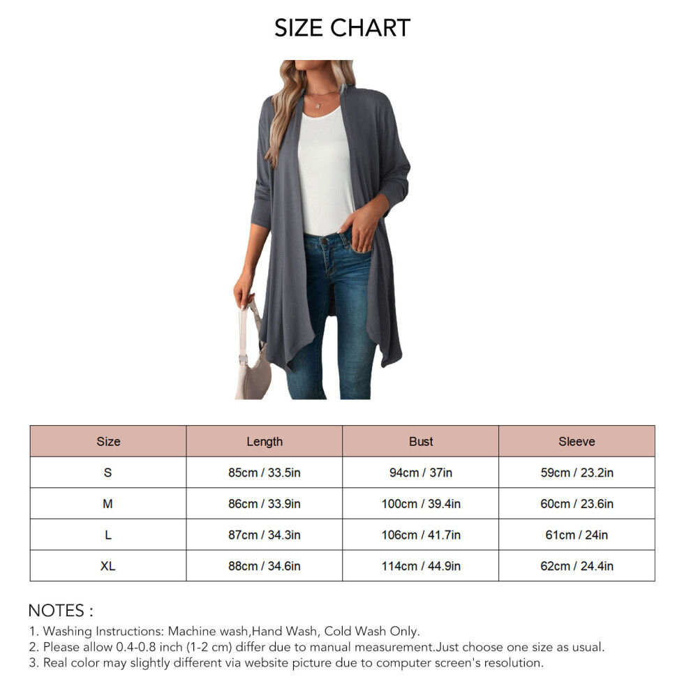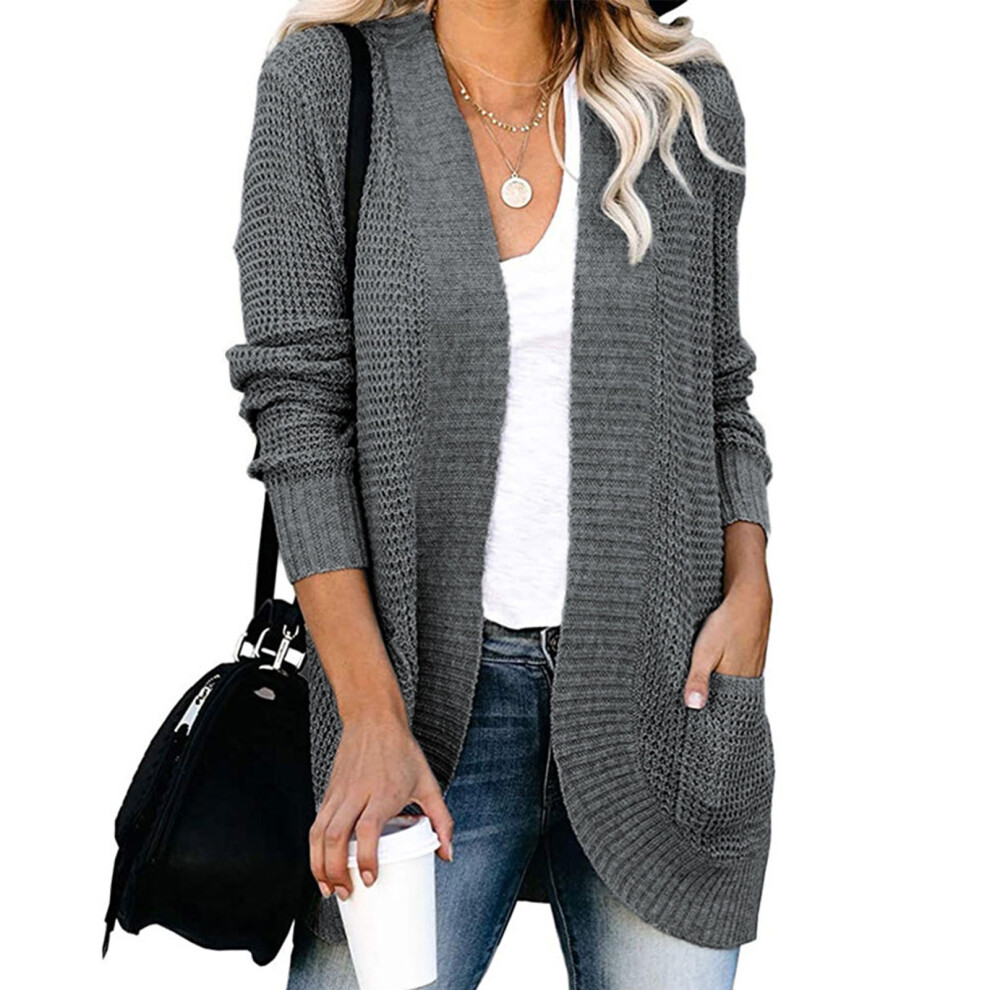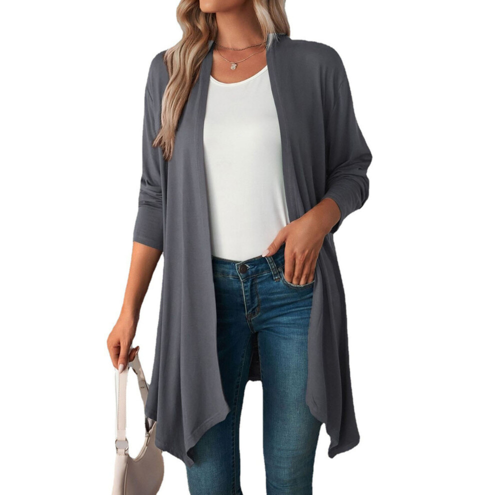 Open Front Grey Cardigan for Women, Long Sleeve, Sizes S-2XL