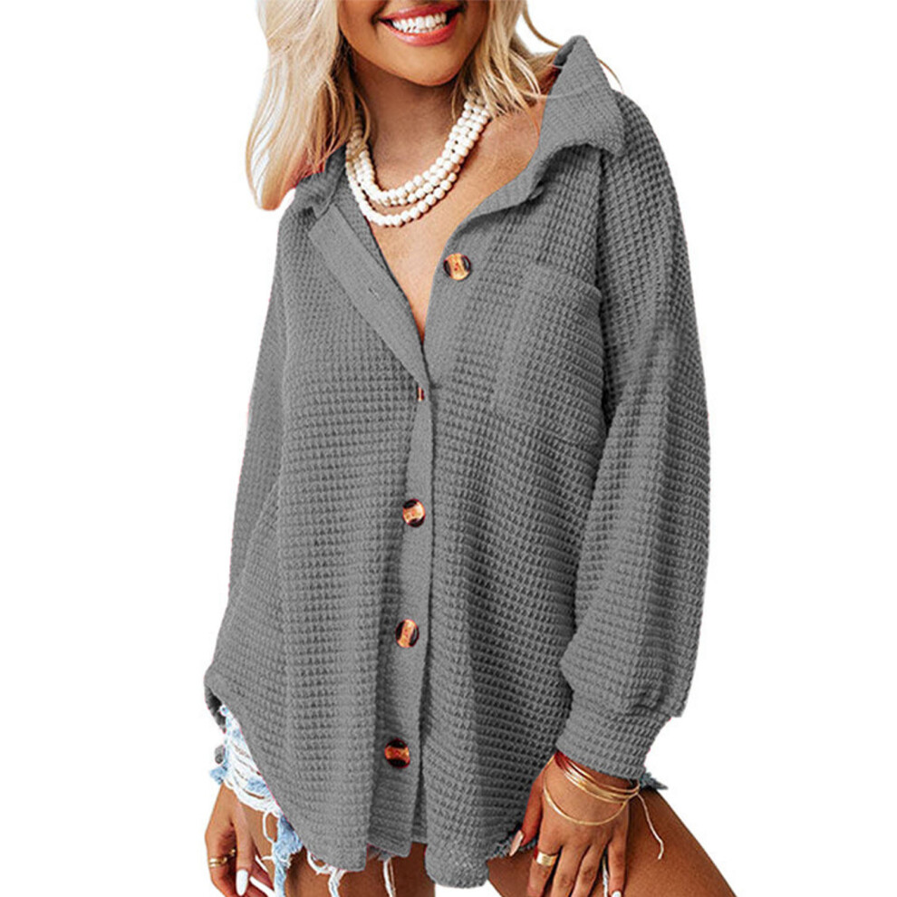 Women's Loose Grey Knit Cardigan Jacket, Long, S-XL