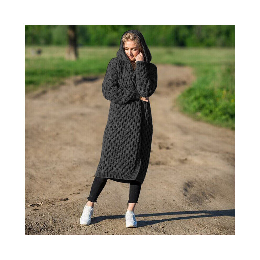 Fall and Winter Casual Solid Gray Cardigan Women Hooded Long Knitted Coats Female Oversized Plus Size Overcoats Outwear