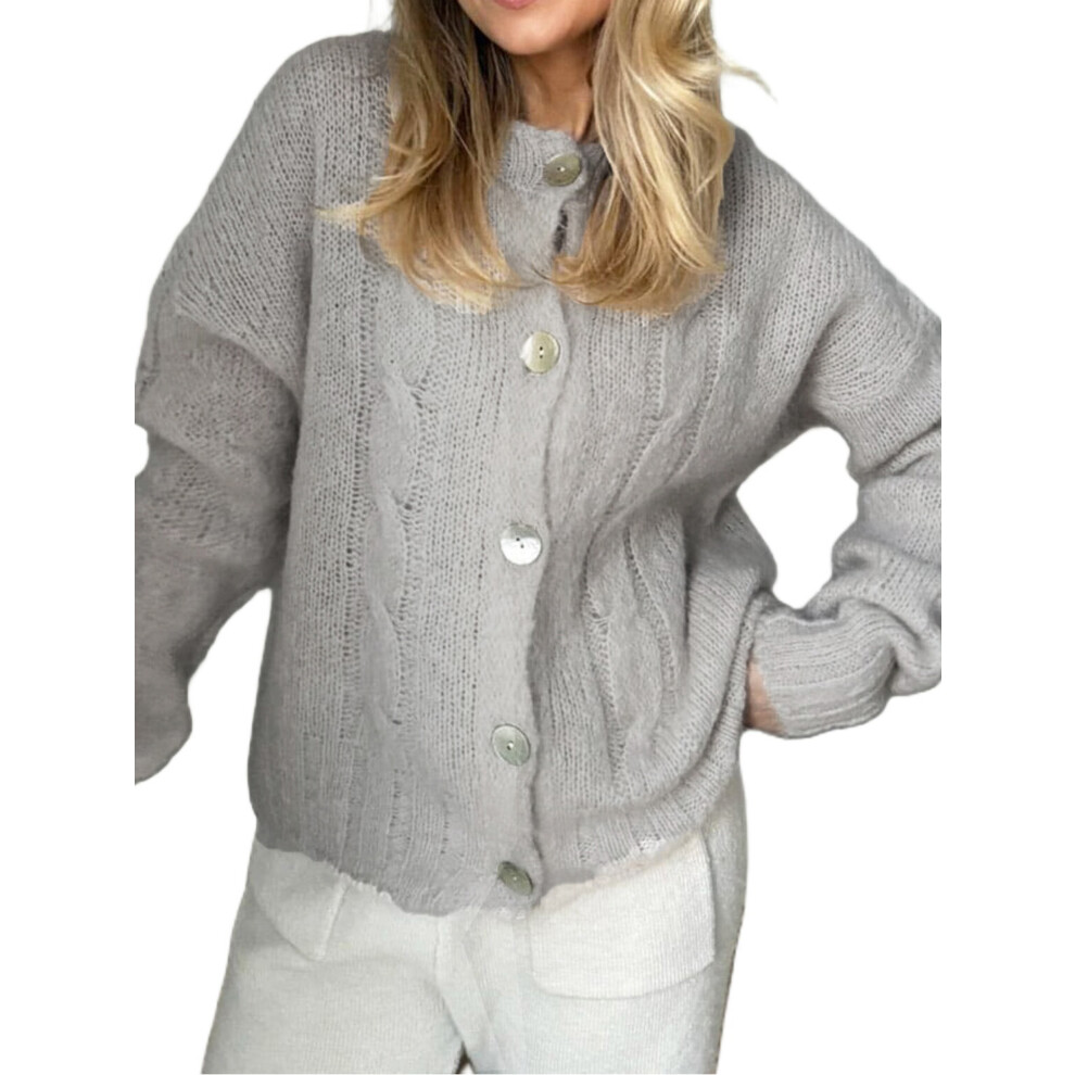(L, Light Grey) Women Knit Cardigan Long Sleeve Button Closure Solid Slit Fall Casual Jacket Sweater