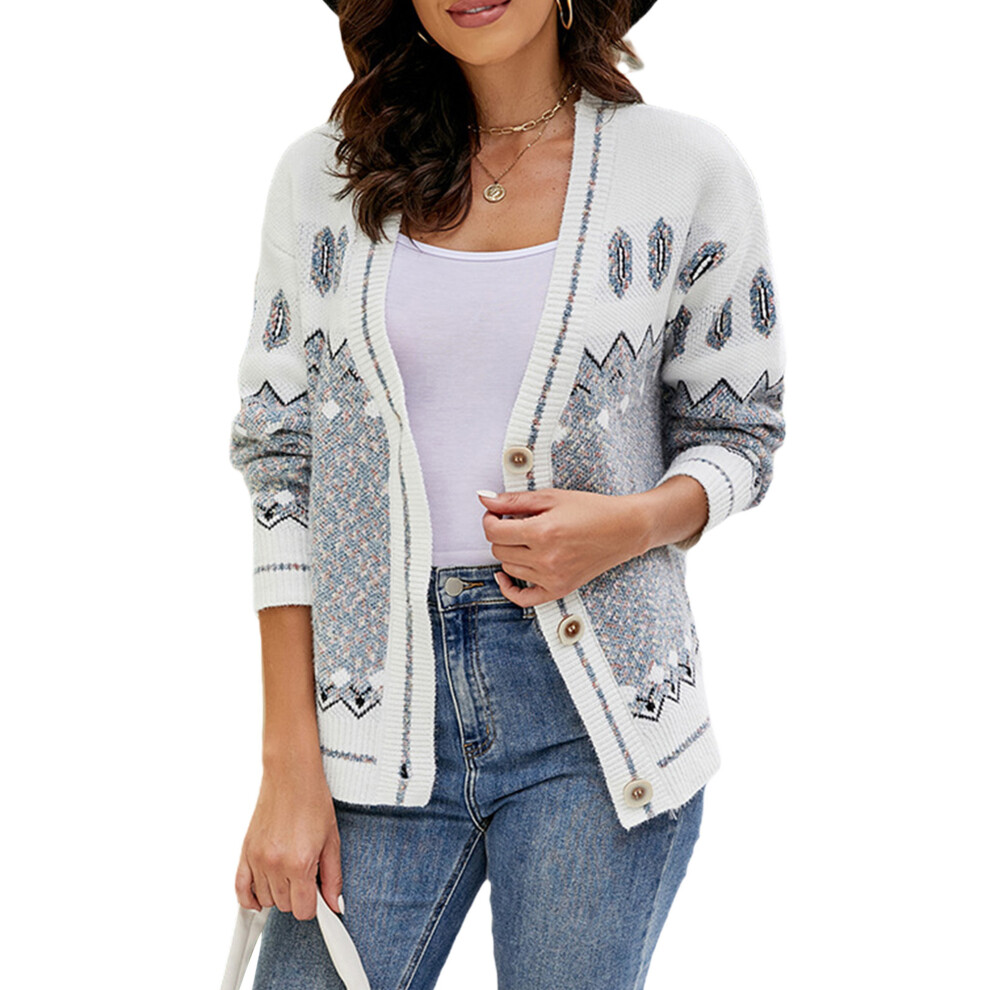 (M, Light Grey) Women Knit Cardigan Long Sleeve Button Closure Contrast Color Fall Casual Jacket Sweater