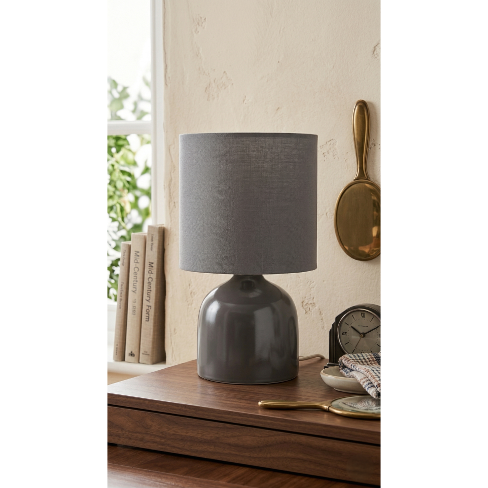 Ceramic Lamp Grey Fabric Shade 24x14Cm