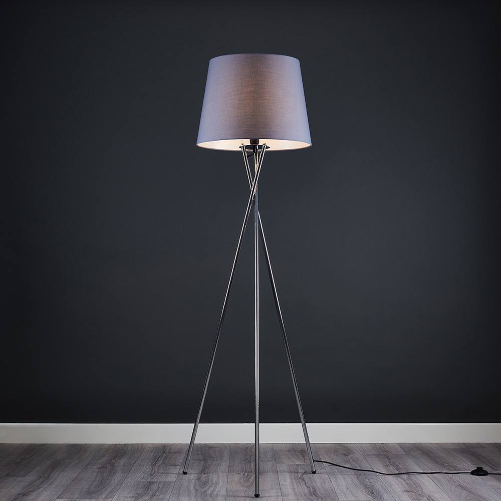 ValueLights Camden Polished Chrome Tripod Floor Lamp with Grey Tapered Lamp Shade