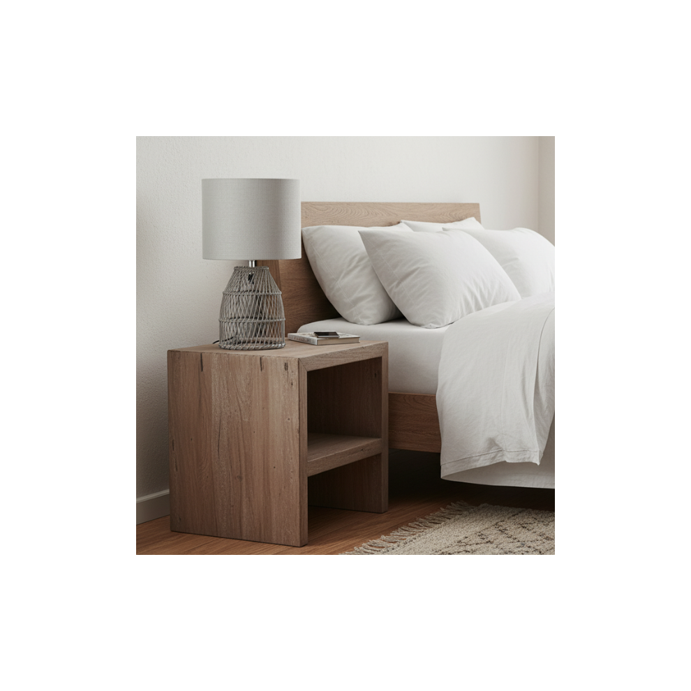 Grey Bamboo 36cm Rattan Wicker Table Lamp with Grey Lamp Shade Bedside Livingroom Lights