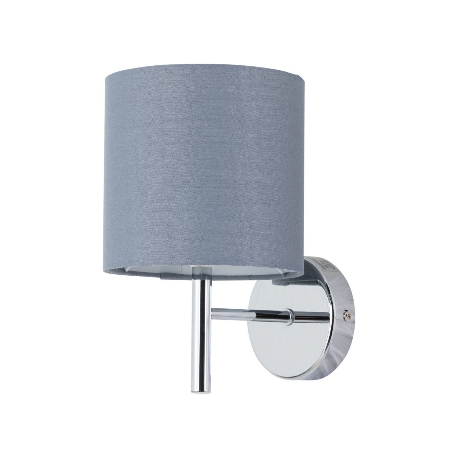 Single Bedside Wall Sconces With Rocker Switch Grey & Chrome Lamp Shade