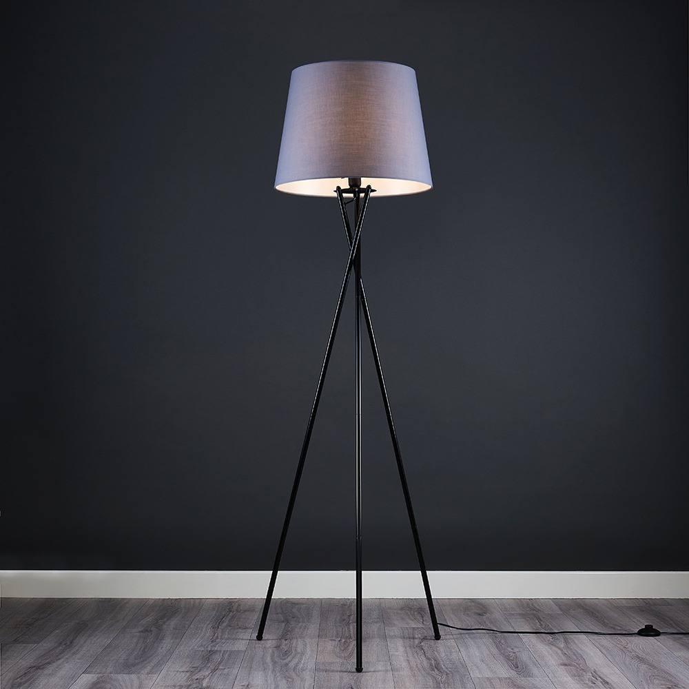 ValueLights Camden Black Metal Tripod Floor Lamp with Grey Tapered Lamp Shade