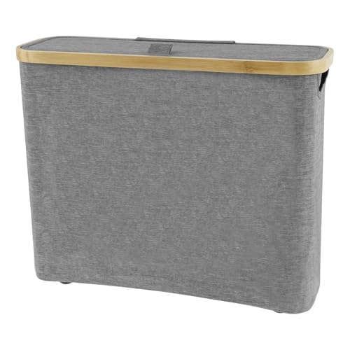 WENKO Cora Grey Laundry Basket with Lid 3 Handles Capacity 63 L Polyester 33 x 58 x 33 cm Grey
