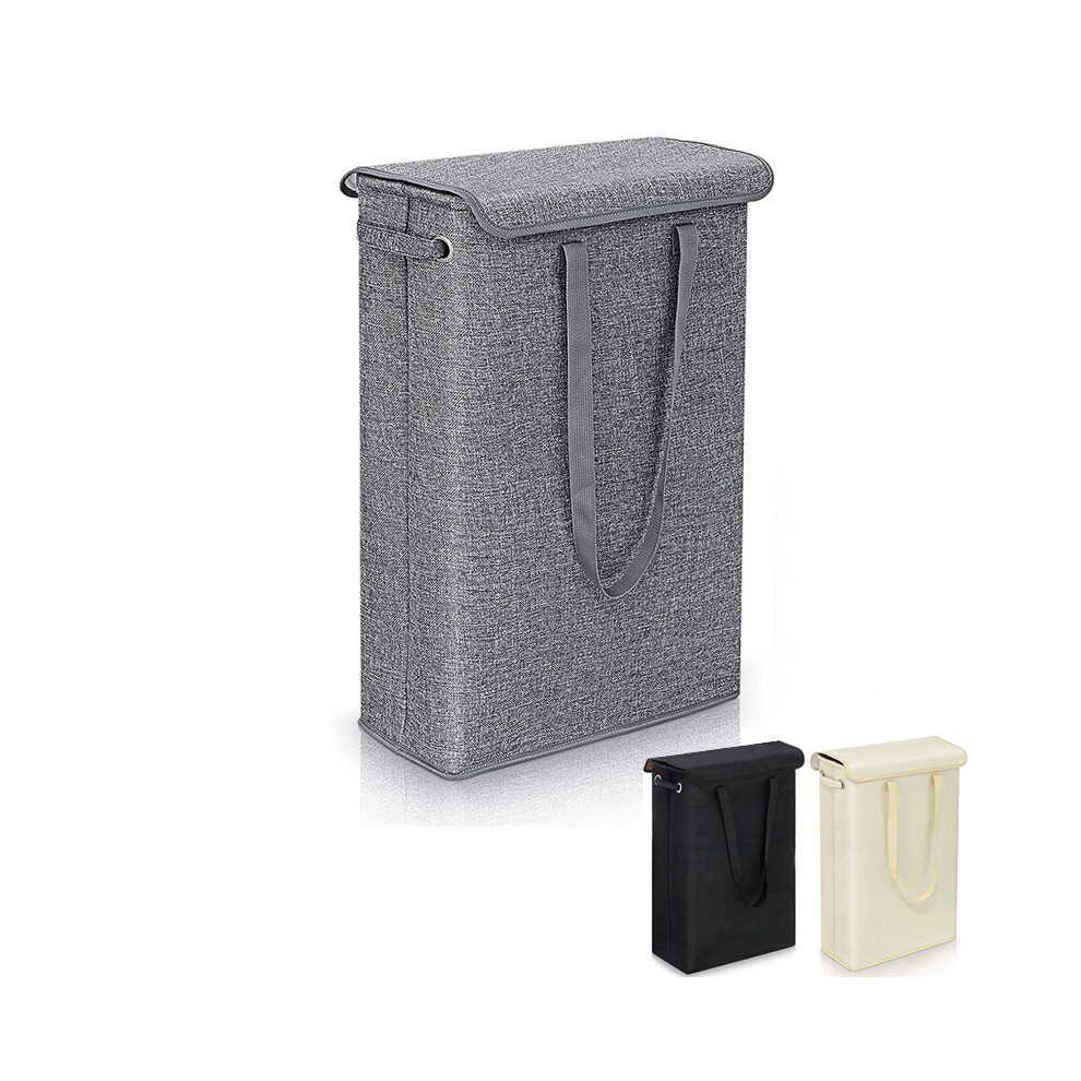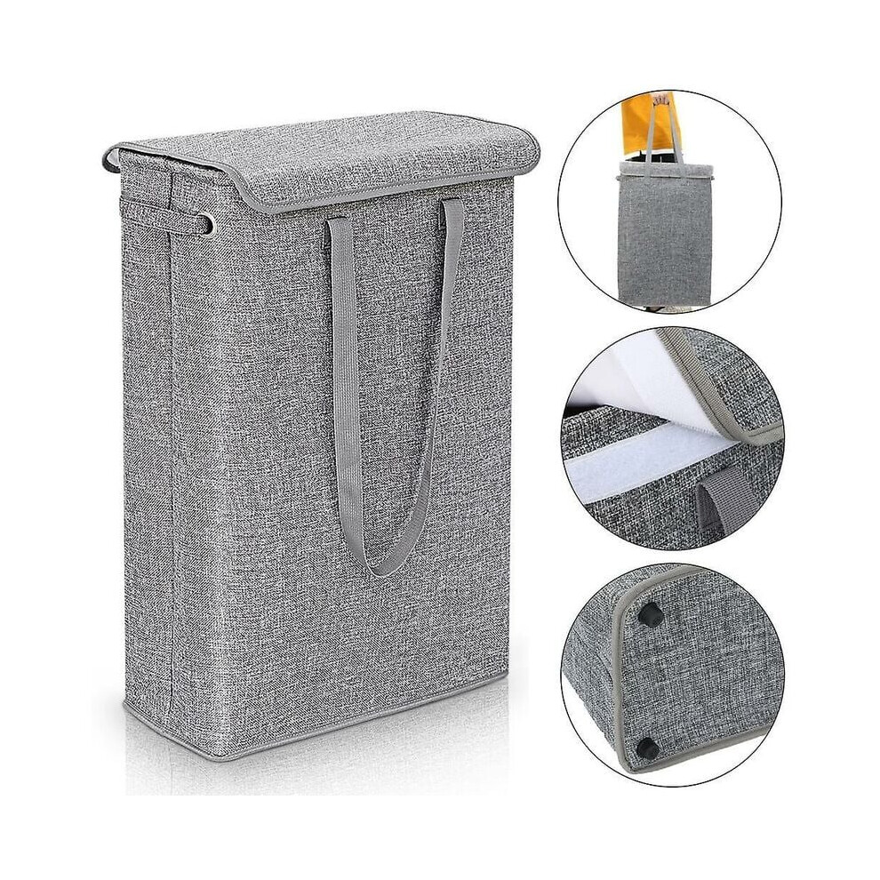 (dark gray) Slim Laundry Basket with Lid Foldable Slim Narrow Storage Basket