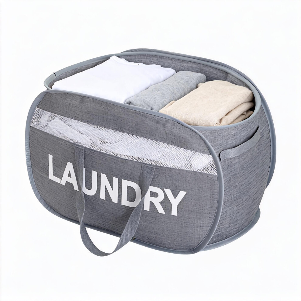 Laundry Basket Washing Clothes Storage Folding Basket Bin Hamper Lid Gray Large.