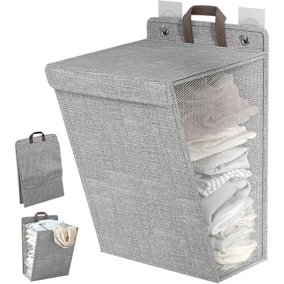 Hanging Laundry Hamper Wall Storage Grey Wicker Laundry Basket Lid Collapsible For Bath Dorm