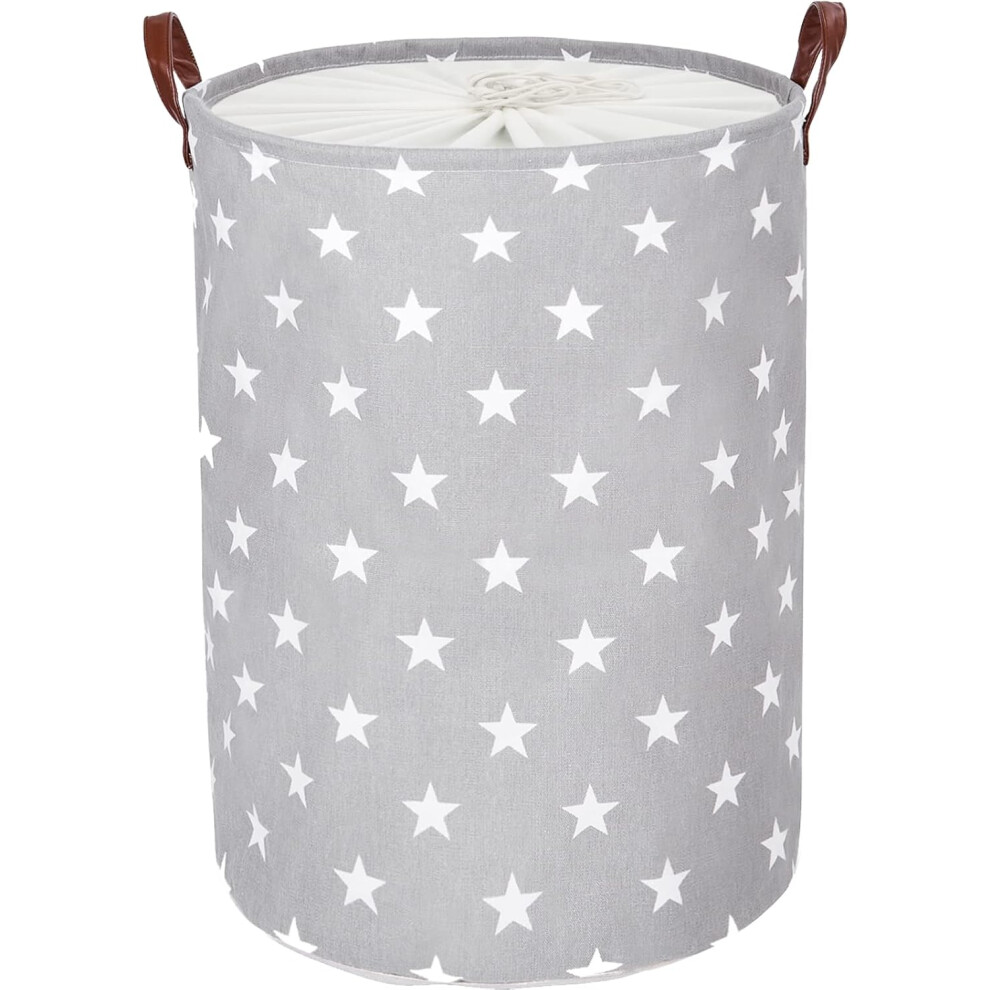 Laundry Basket with Lid Large Capacity Laundry Bag Foldable Cord Storage Basket Gray Stars