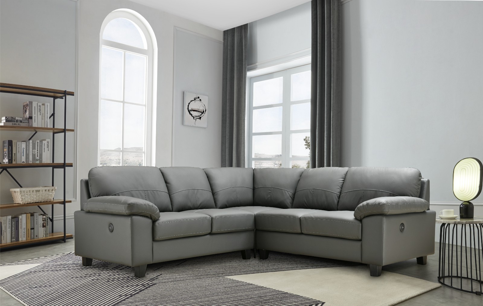 Nova Leather Electric Recliner With Cupholders - USB Charging Ports - Elephant Grey - Leather Corner Sofa