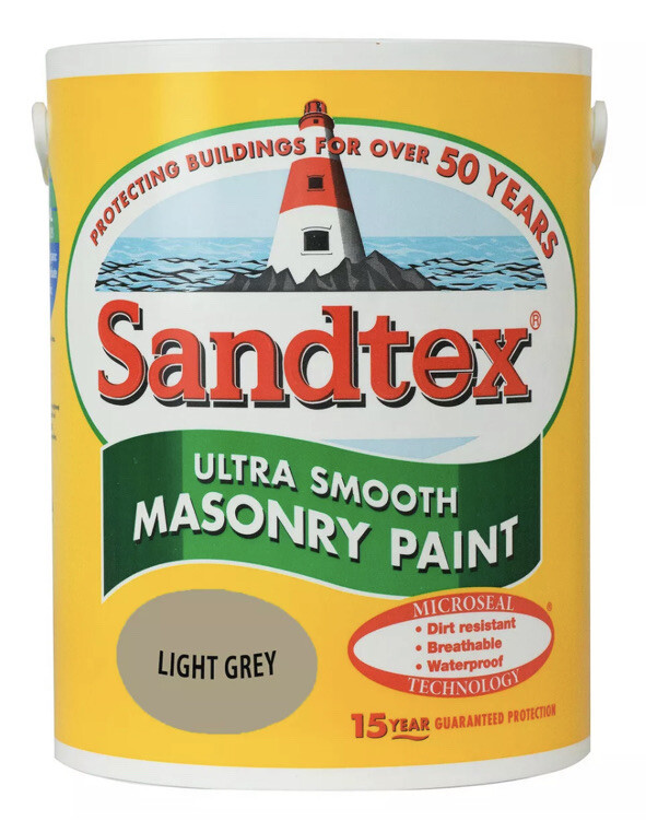 Sandtex LIGHT GREY 5 LITRE Ultra Smooth Exterior Masonry Paint 5L Tub