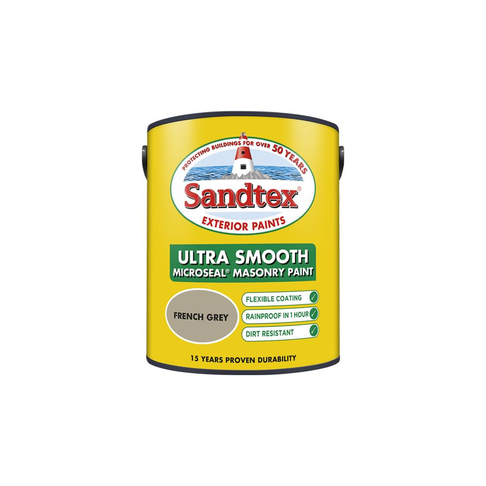 Sandtex 5 Litre French Grey Ultra Smooth Masonry Paint Home Wall Exterior Paint