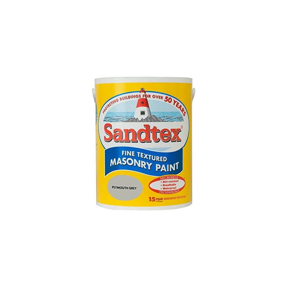 Sandtex Microseal Fine Textured Weatherproof Masonry 15 Year Exterior Wall Paint - Plymouth Grey - 5L