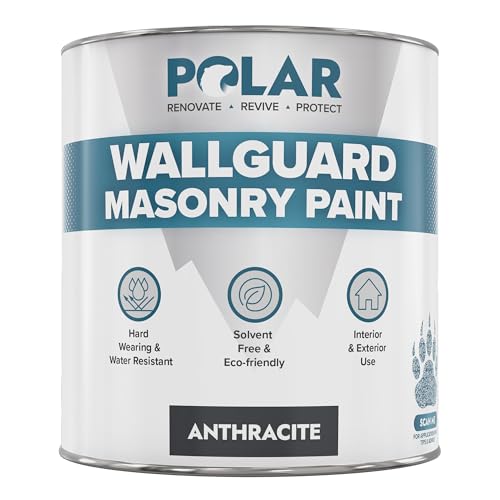 Polar Wallguard Anthracite Masonry Paint Exterior - 1 Litre | Waterproof Coating for Brick, Concrete, Stone, Pebbledash, and Ironwork | High Durability and Superior Protection for Exterior Walls