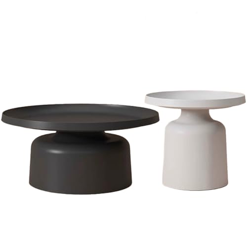 Round Nesting Coffee Table,Cream White Nesting Coffee Table,2 in 1 Modern Center Tables Low Tables Sets,Center Table Modular Combination Design for Living Room, Apartment(Gray/Black,70cm/27.5in-B)