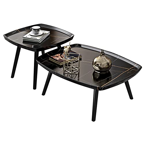 Nesting Table Rectangle Set Of 2,Creative Wood Nesting Coffee Table,Sofa Side End Tables,with Adjustable Foot Pad,for Living Room Bedroom Balcony Coffee Tables/Nightstand (Color : Gray) (Black )