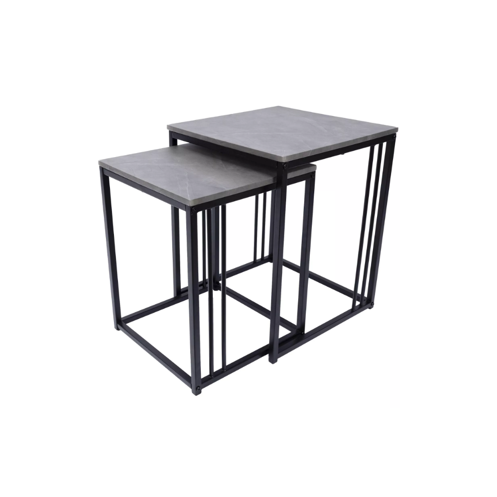 Set of 2 Grey Marble Effect Nesting Tables - Metal Frame Coffee Side Tables