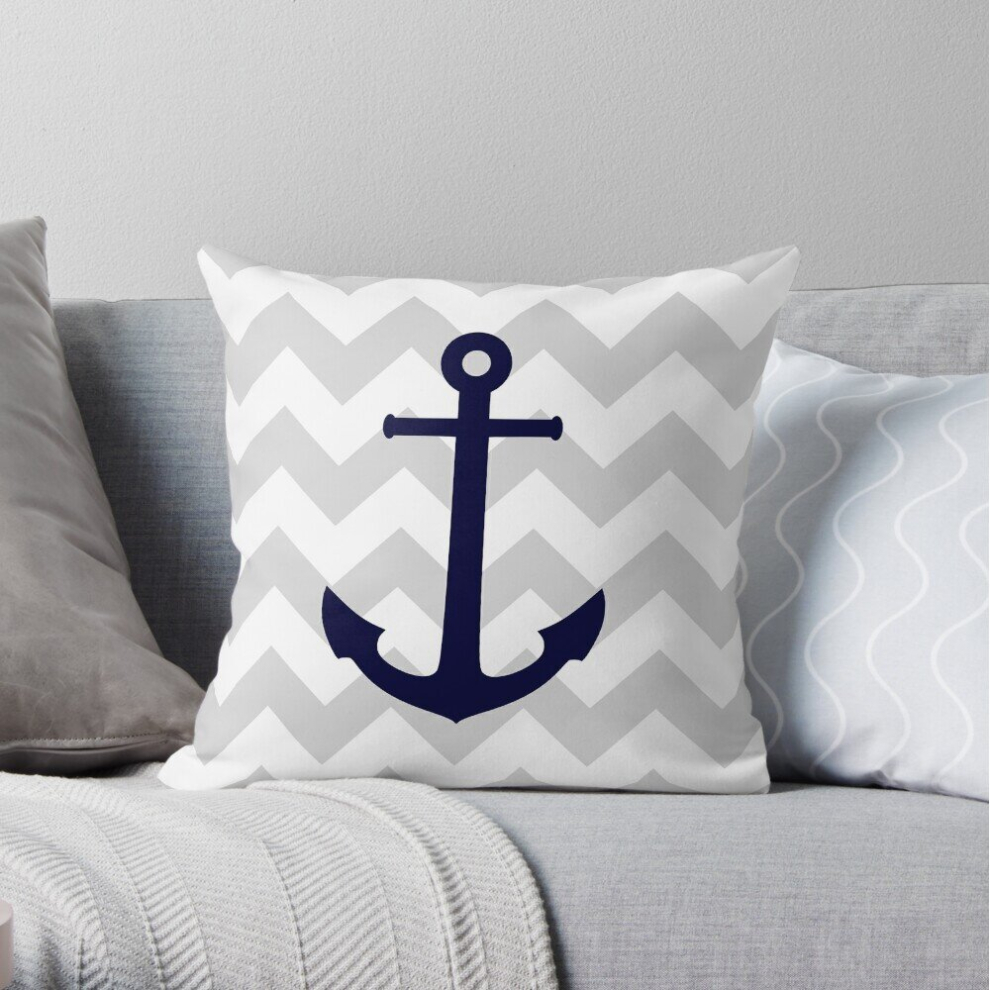 Pillow Cases Nautical Navy Blue Anchor On Gray Chevron Throw Cover 12x12 16x16 18x18 inch 7 Size