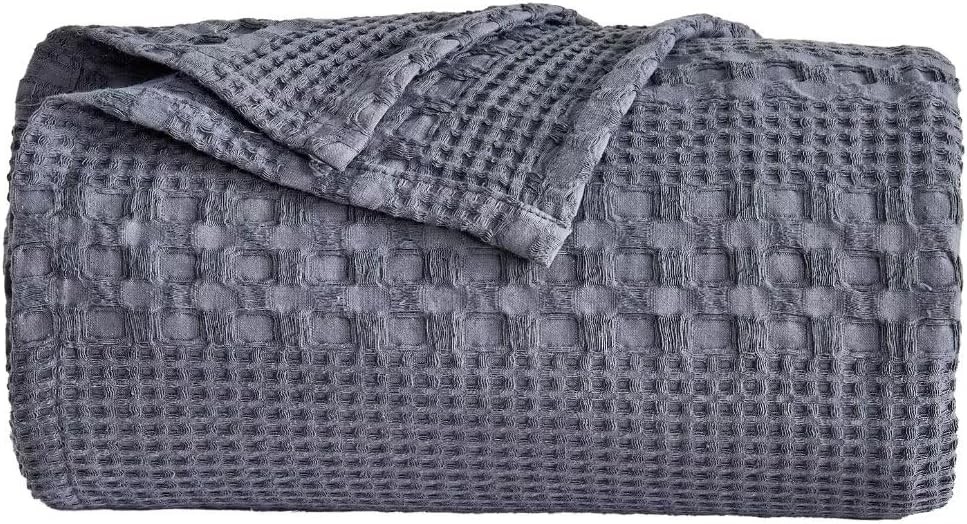 Wajade Waffle 100% Cotton Blanket Gray Throw for All 200x220cm,