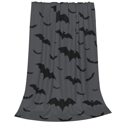 Newhomestyle Gothic Halloween Bats Blanket, Black Gray Soft Lightweight Throw Blanket, All Season Anti-Pilling Cozy Fleece Blanket, Flannel Blanket for Bed Sofa Bedroom Couch Decor, 150X125 cm
