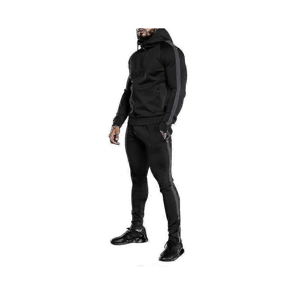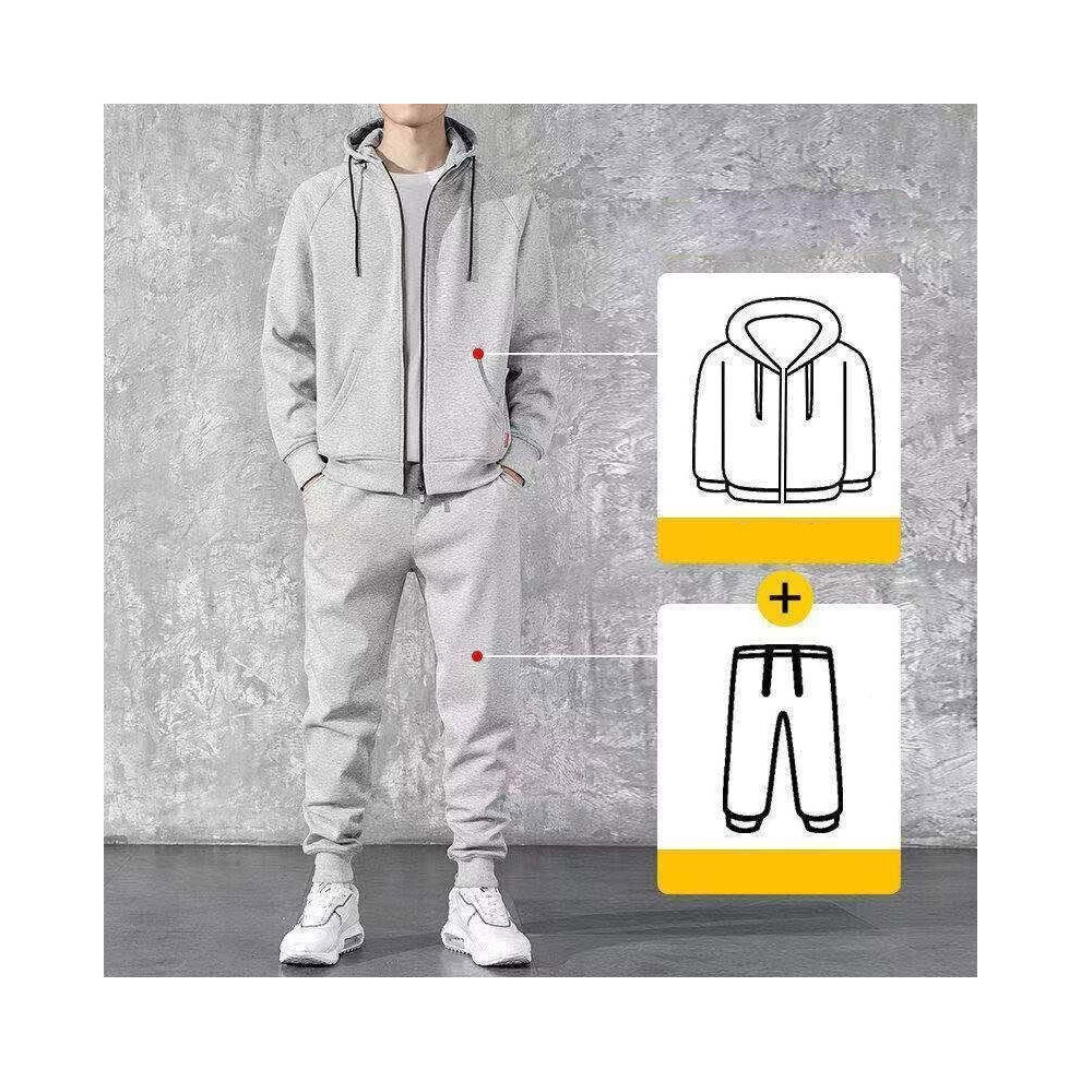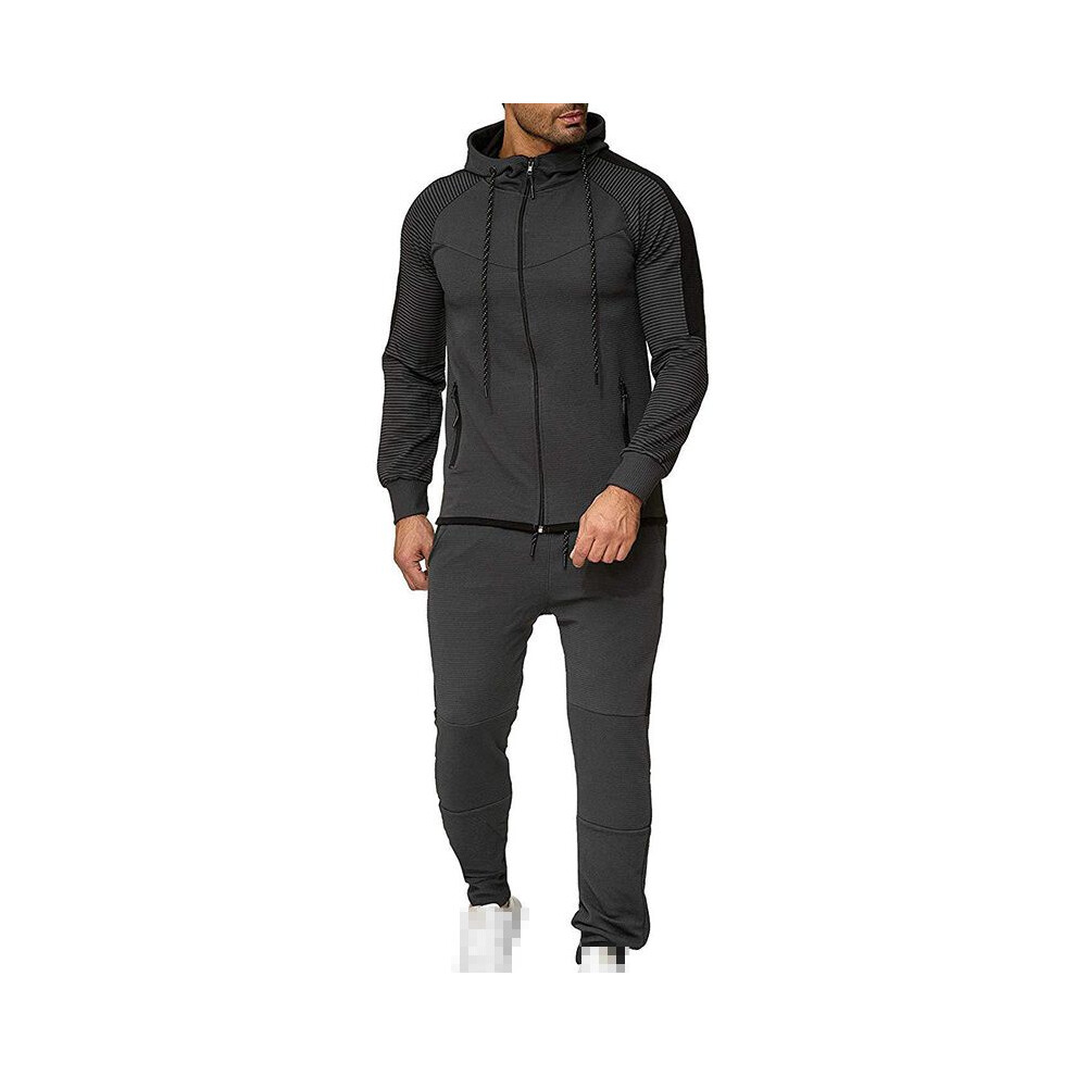 (DarkGray, XL) Jogging Tracksuit Mens Hoodie Coat Jacket Trousers Pants Sports Set Sweat Suit