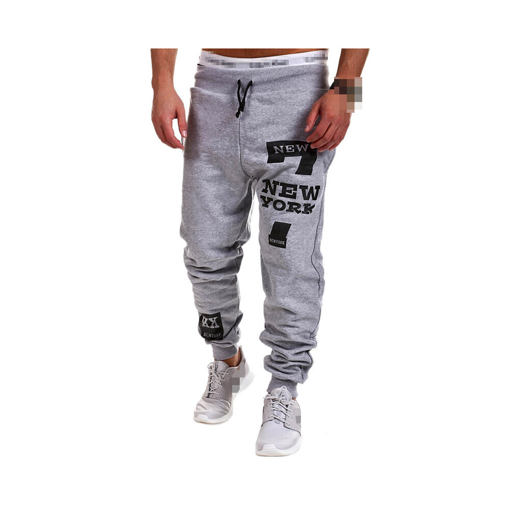 (LightGray, L) Tracksuit Mens Sport Gym Slim Fit Skinny Jogging Joggers Pants Sweat Trousers