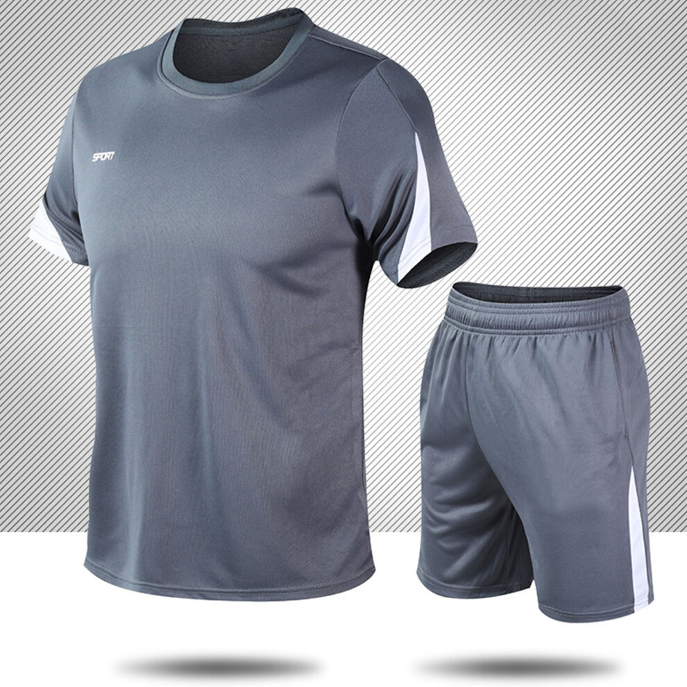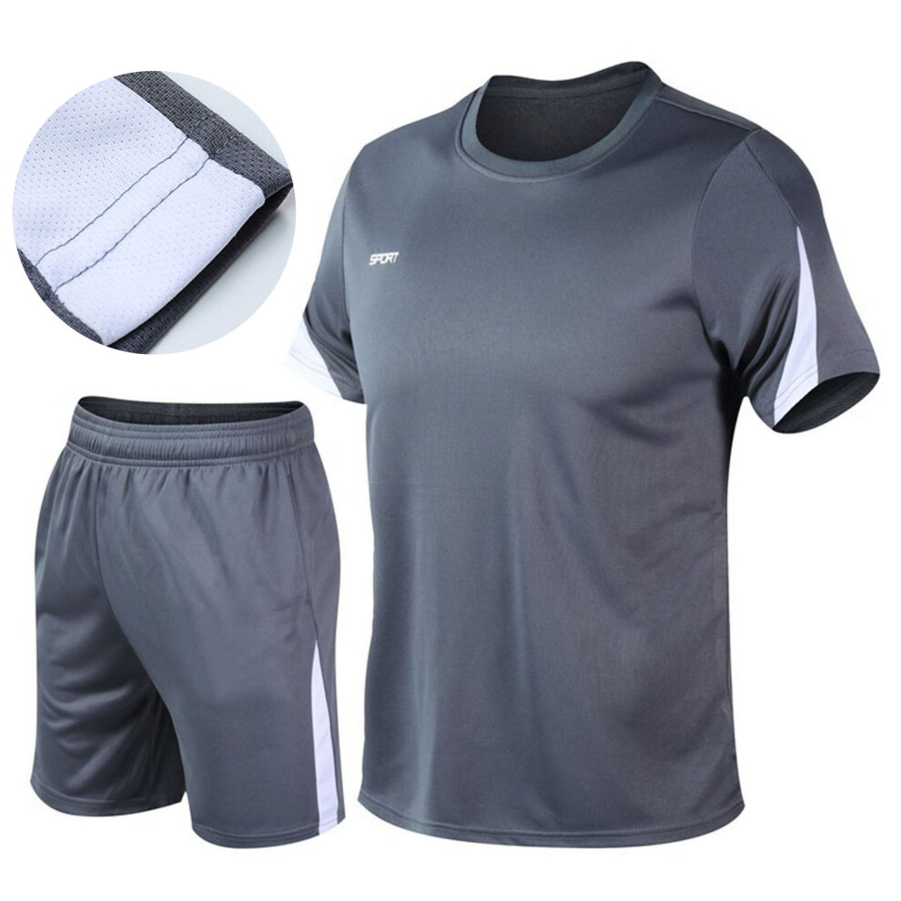 Men's Gray Polyester Tracksuit Set - Loose Fit Workout Shorts & Shirt, M