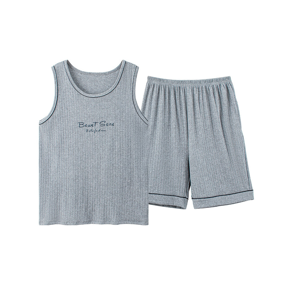Summer Light Gray Casual Tracksuit Big Yards L-4XL Pajamas Men Letter Print Sleep Vest Shorts Set Mens Sleeveless Pijamas Hombre