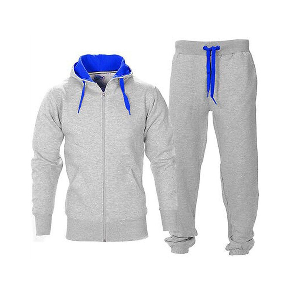 (Light Gray Blue, M) Tracksuit Set Mens Fleece Zip Hoodie Topsbottoms Joggers Gym Jogging Contrast
