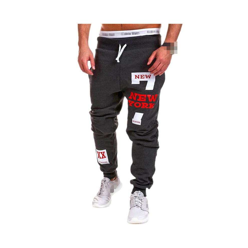 (DarkGray, L) Tracksuit Sport Mens Gym Slim Fit Skinny Jogging Joggers Sweat Trousers Pants