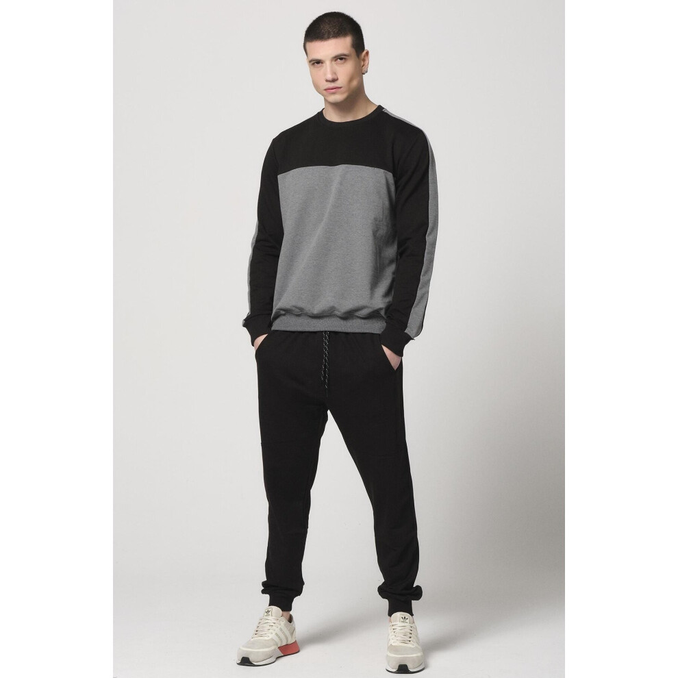 Male Gray Detailed Basic Tracksuit Set