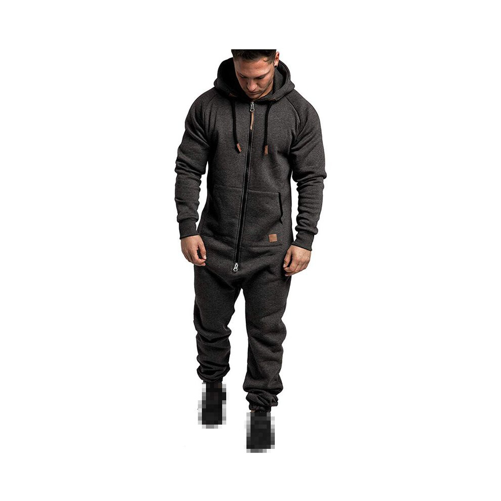 (Dark Gray, 2XL) Mens Tracksuit Jogging Hoodie Coat Pants One Piece Jumpsuit Sport Gym Sweat Suit