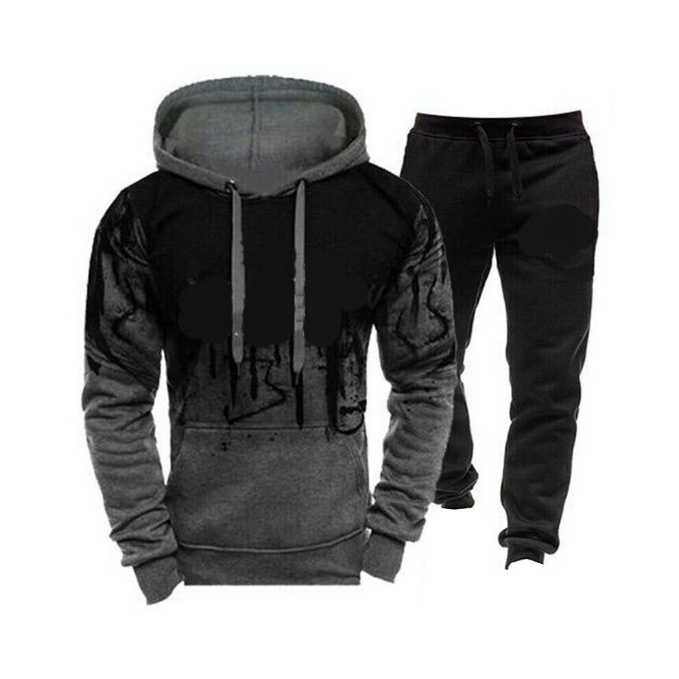 (DarkGray, XL) Men Tracksuit Set Hoodie Bottoms Pullover Trousers Sweatshirts Jogging Pants