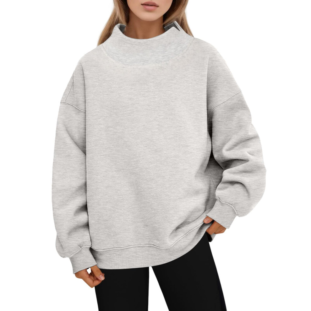 Women's Long Sleeve Sweatshirt Hoodless Oversized Plain Fleece Pullover Crew Neck Gray XL Sportswear Tracksuit Top