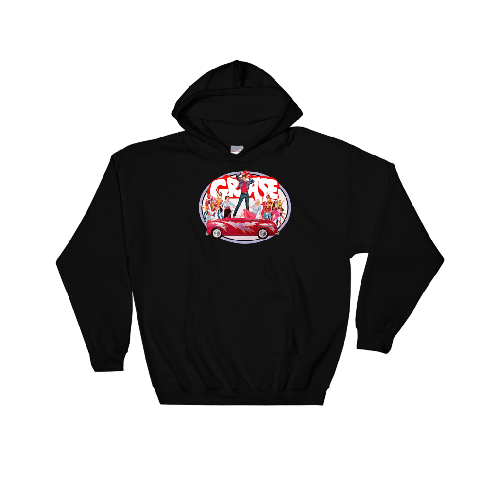 (XX-Large, Black) Vintage Film Grease Logo Black Men Women Unisex Hooded Sweatshirt Hoodie
