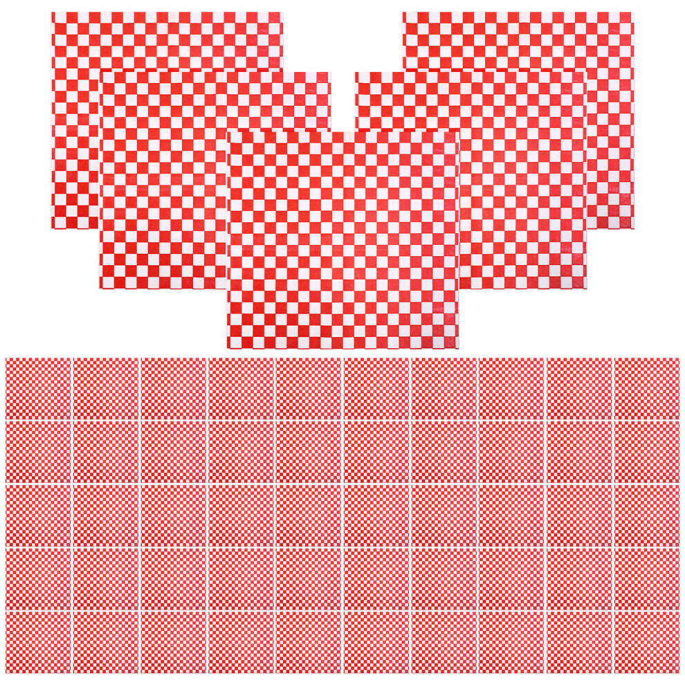Grease Proof Deli Paper, Multi Purpose Food Wrap, 12x12 Inch Waxed Sheets with Classic Red and White Checkered Print, Recyclable and Microwave Safe