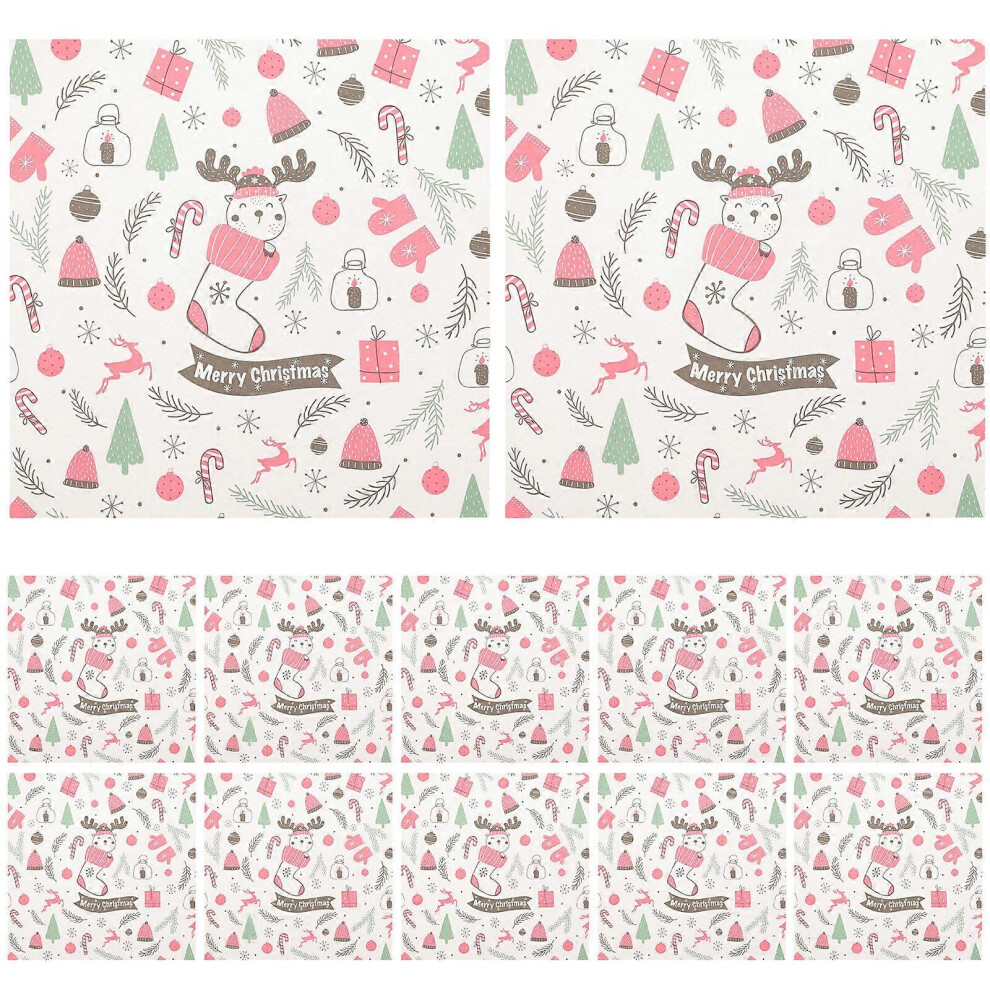 (As show, One size) 50pcs Disposable Food Wrap Paper Adorable Xmas Design Grease-proof Paper Food Picnic Paper