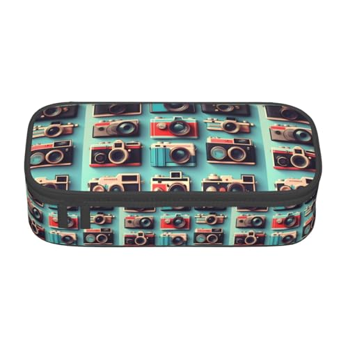TTYDOKLA Retro Cool Camera Collection Print Oxford Cloth Pencil Pouch with Multiple Compartments,Great for Travel Or Office