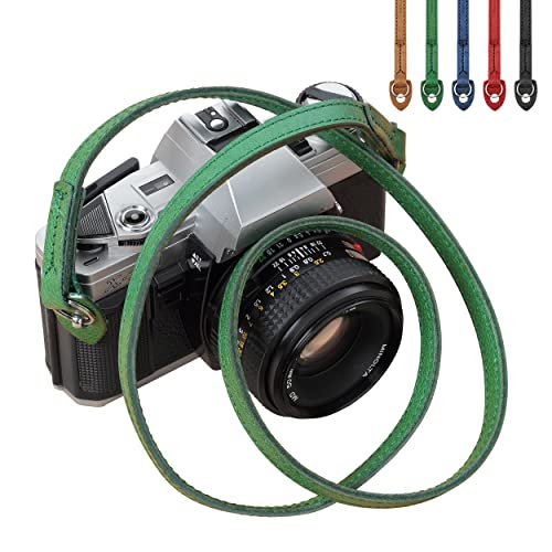 PADWA Green Genuine Leather Minimalist Camera Strap - 0.43" Double Layer Soft Cowhide Stitching,Minimalist Camera Straps for Mirrorless Digital Camera,Great Gift for Men & Women Photographers