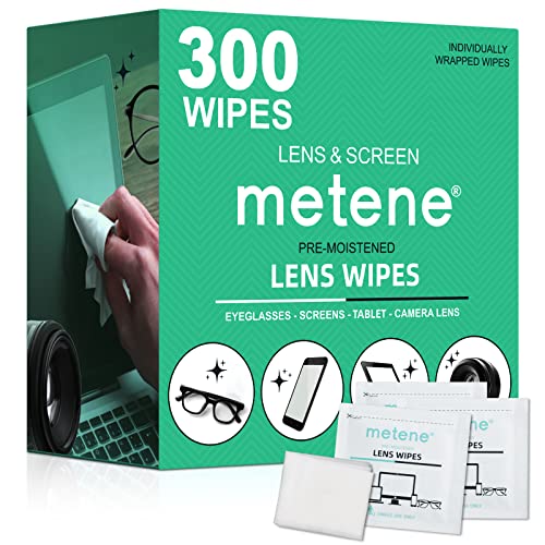 Metene Lens Cleaning Wipes, 300 Pre-Moistened and Individually Wrapped Eyeglass Glasses Cleaner -Great for Eyeglasses, Camera Lens, Tablets,