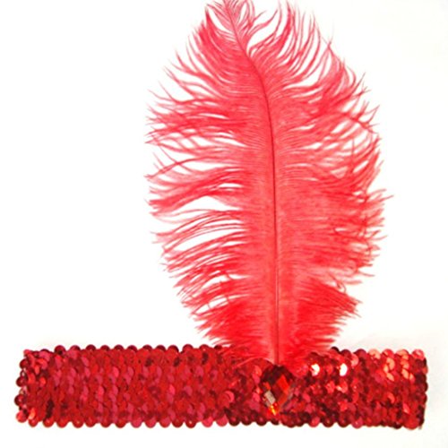 Gemini_mall® Ladies Charleston Feather Headband 1920's Great Gatsby Flapper Headpiece Fancy Dress Headwear (Red)