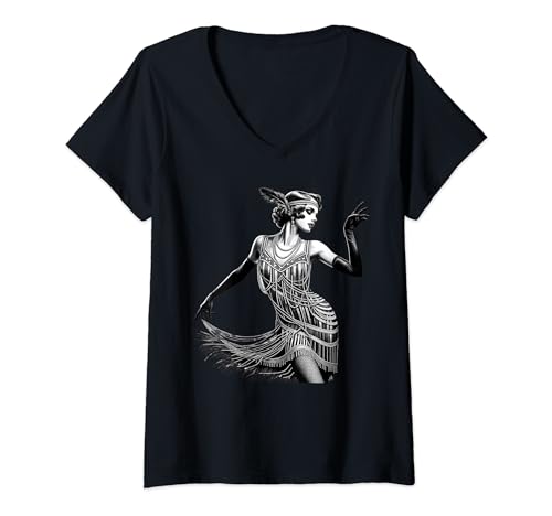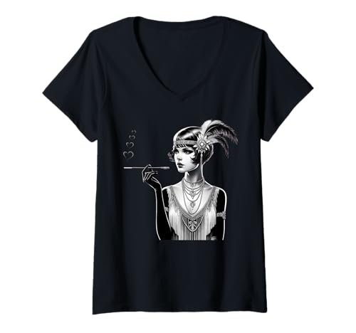 Womens ROARING 1920's Great, Gatsby Glamorous Woman Flapper V-Neck T-Shirt