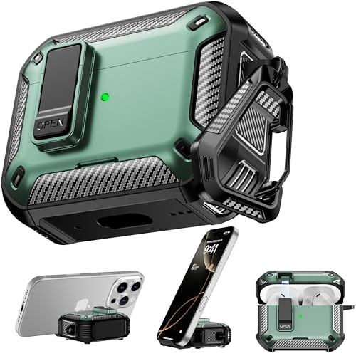 RFUNGUANGO Compatible with AirPods Pro 3rd Generation Protective Case with Phone Holder Compatible with Back Magnetic Suction Function Suitable for AirPods Pro 3 Protective Case-Green