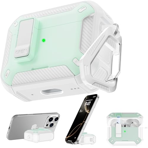 RFUNGUANGO Compatible with AirPods Pro 3rd Generation Protective Case with Phone Holder Compatible with Back Magnetic Suction Function Suitable for AirPods Pro 3 Protective Case-Mint green