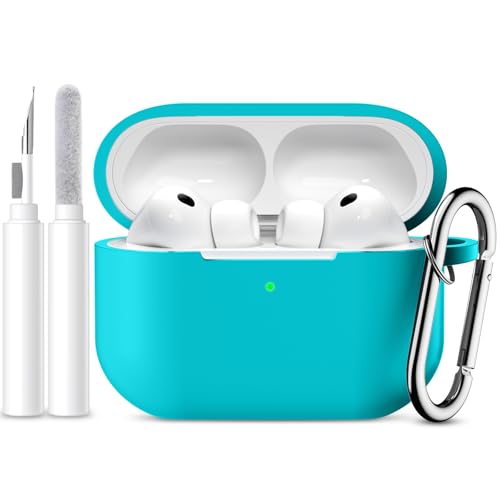 LEWOTE Case Compatible with Apple Airpods Pro 3 Funny Cute Anti-Lost Cover with Hook and Clean Kit[Support Wireless Charging] (Mint Green)